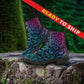 The printing process my production partner uses to make the boots embeds the design into the leather so the design will not peel off or wash away or anything like that.