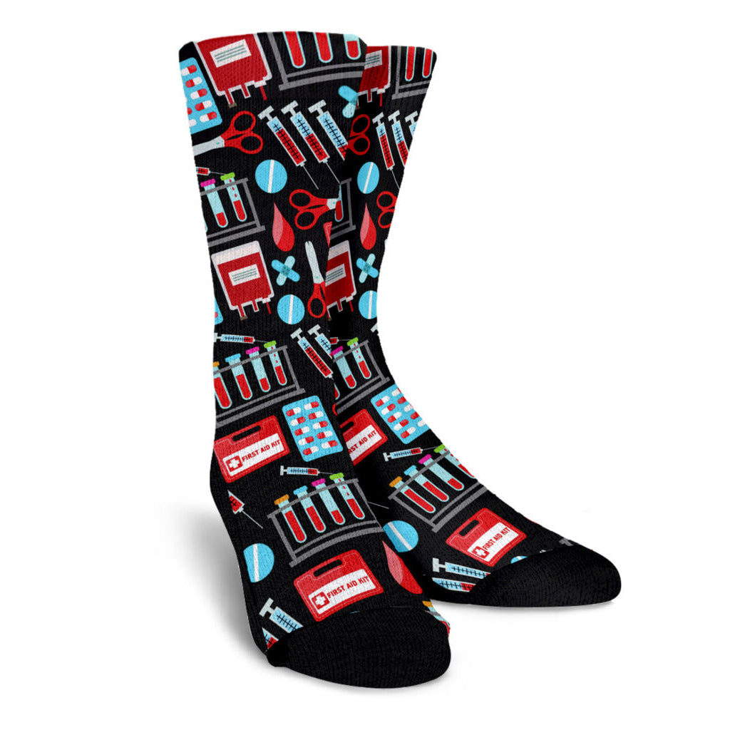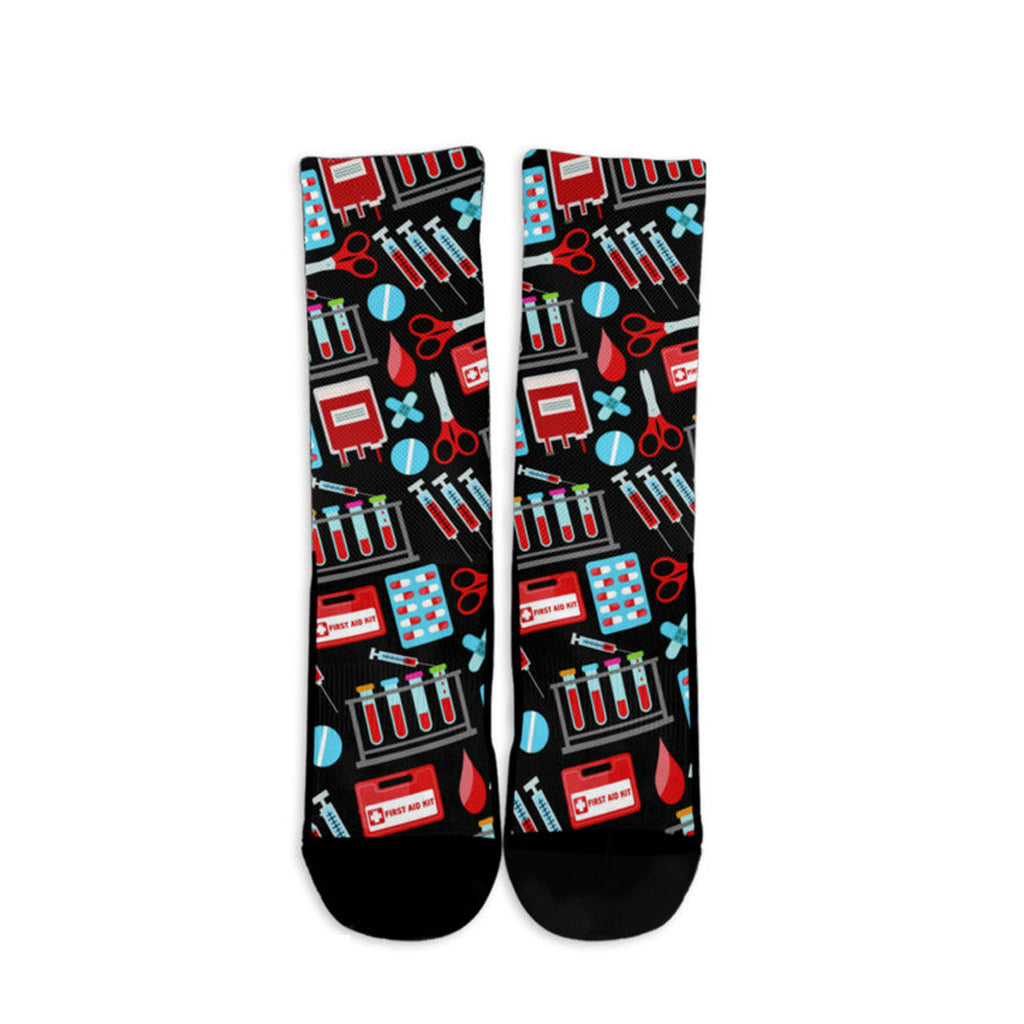 These Phlebotomist Women Crew Socks are designed with the hard-working phlebotomist in mind. Featuring a comfortable fit and durable material, these socks will keep you stylish and supported throughout your busy day. Perfect for any medical professional looking for a touch of humor in their wardrobe.
