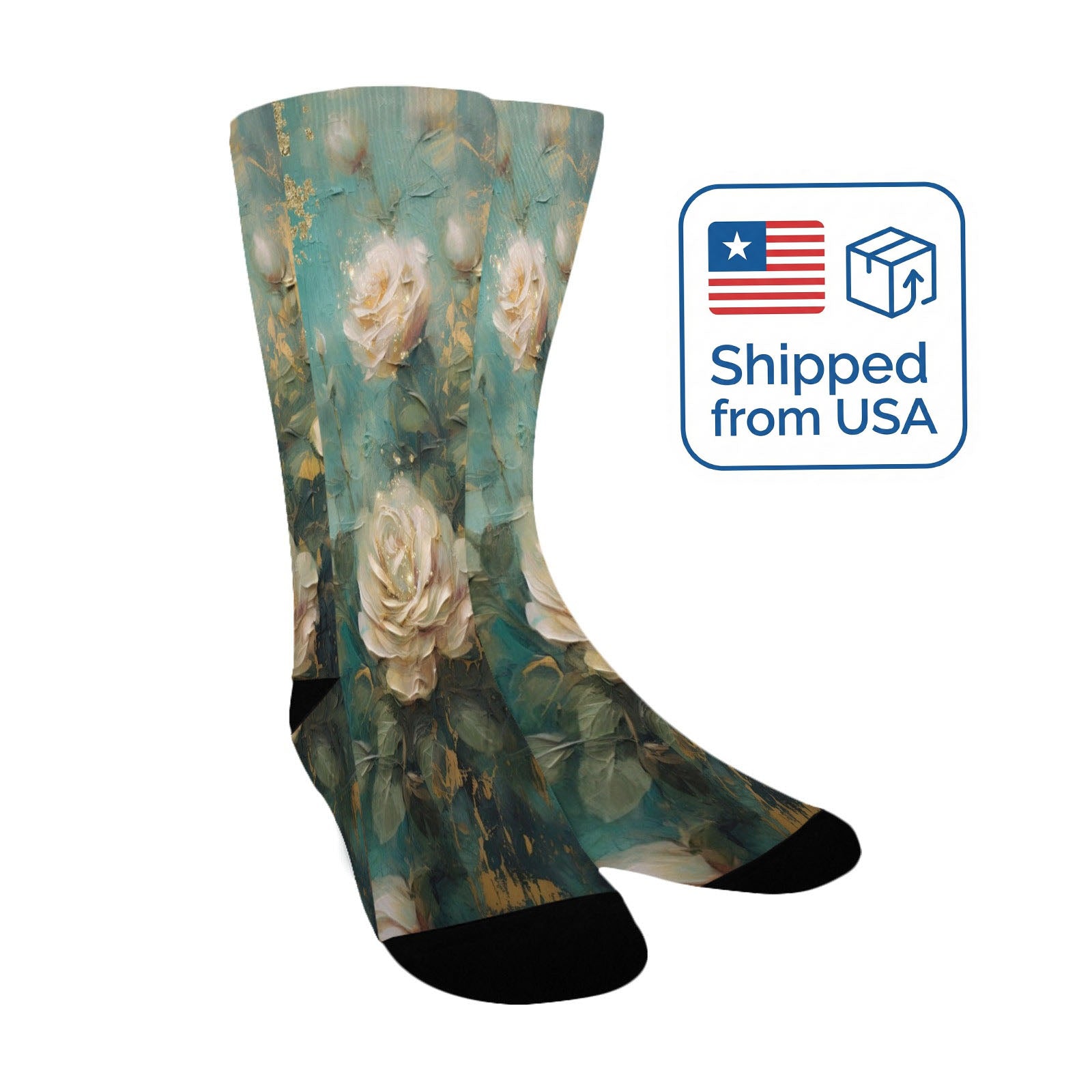 Antique Emerald Romance Journal Paper Socks - Custom Socks for Women Made in USA