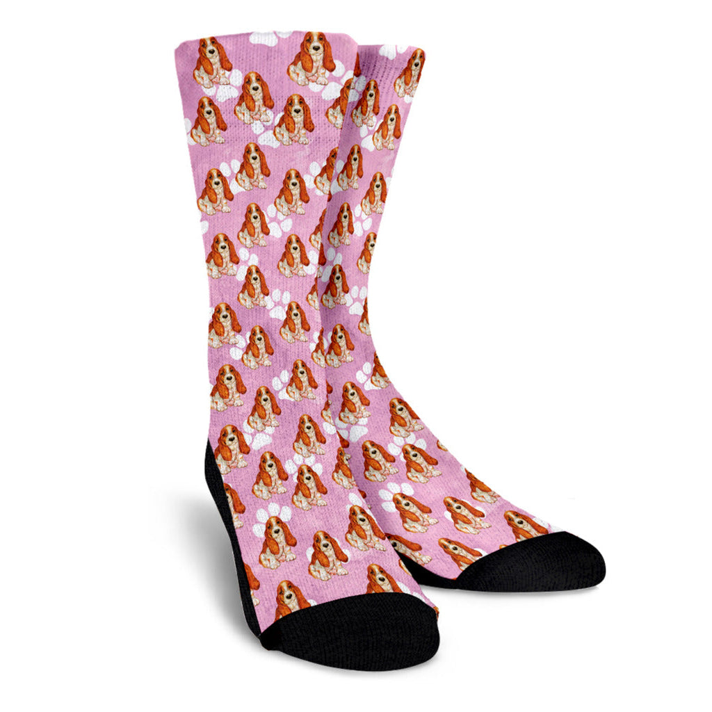 These Floppy Eared Bassett Hound Socks are sure to be a hit with dog lovers! Made from high-quality material, these socks feature a cute graphic of a bassett hound with its iconic floppy ears. They are comfortable, durable, and perfect for any occasion. Show off your love for dogs while keeping your feet warm and stylish with these socks!