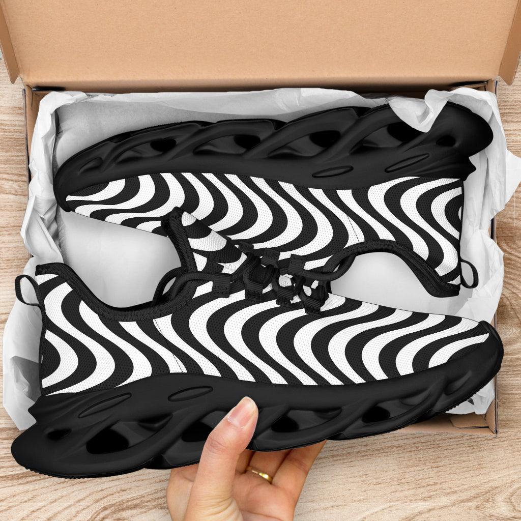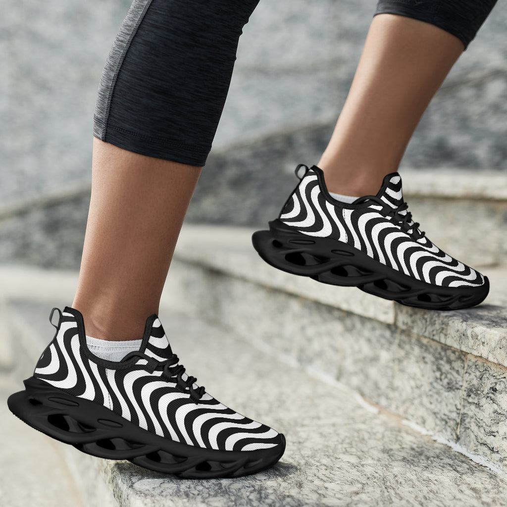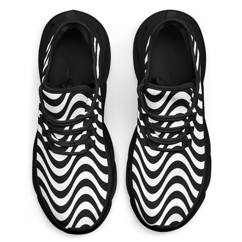 Take the plunge with Waves in Black and White! With super lightweight construction and an M-sole design, these athletic sneakers will get your heart racing while you run, jump, and explore! Conquer your outdoor adventures with style and confidence. Feel the rush!