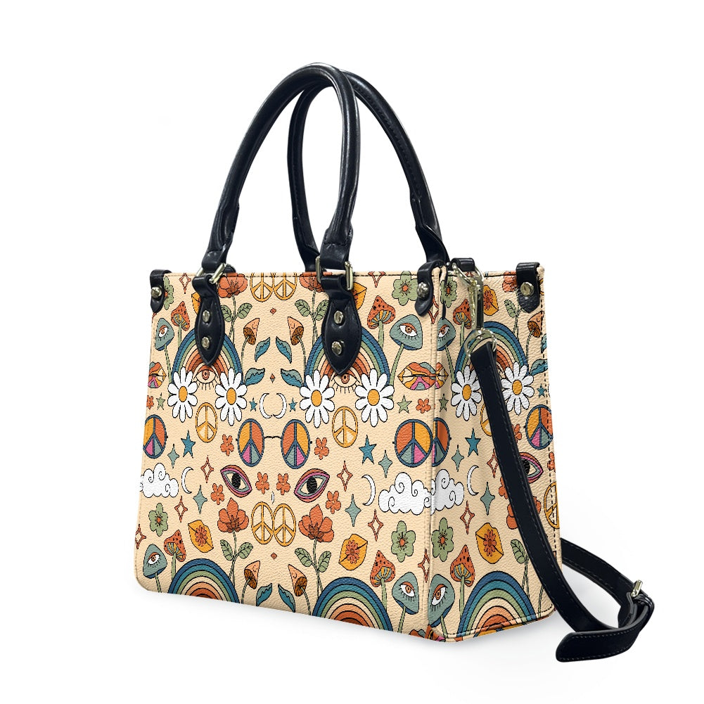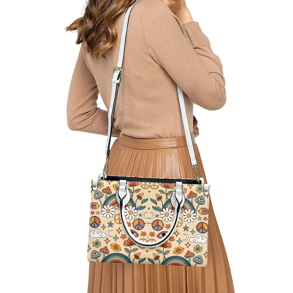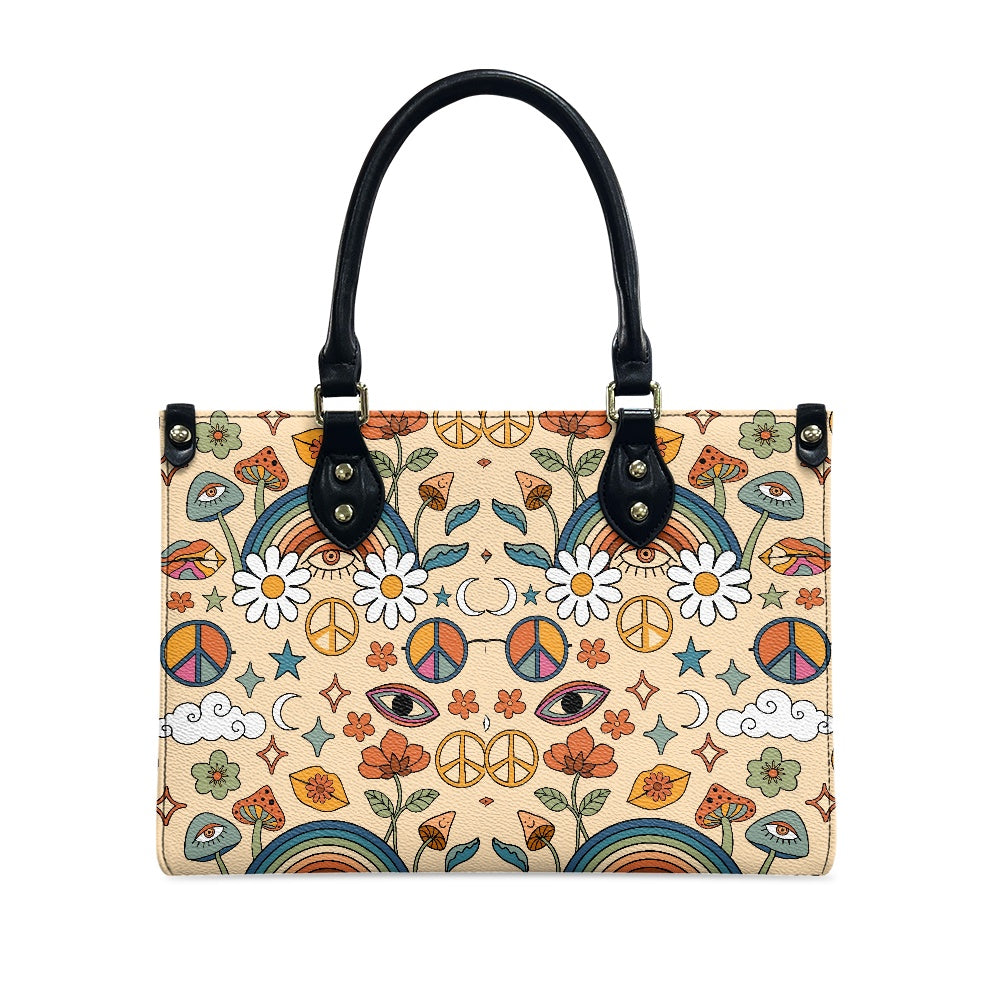 Boho Rainbow and Trippy Mushrooms Women's Vegan Leather Handbag