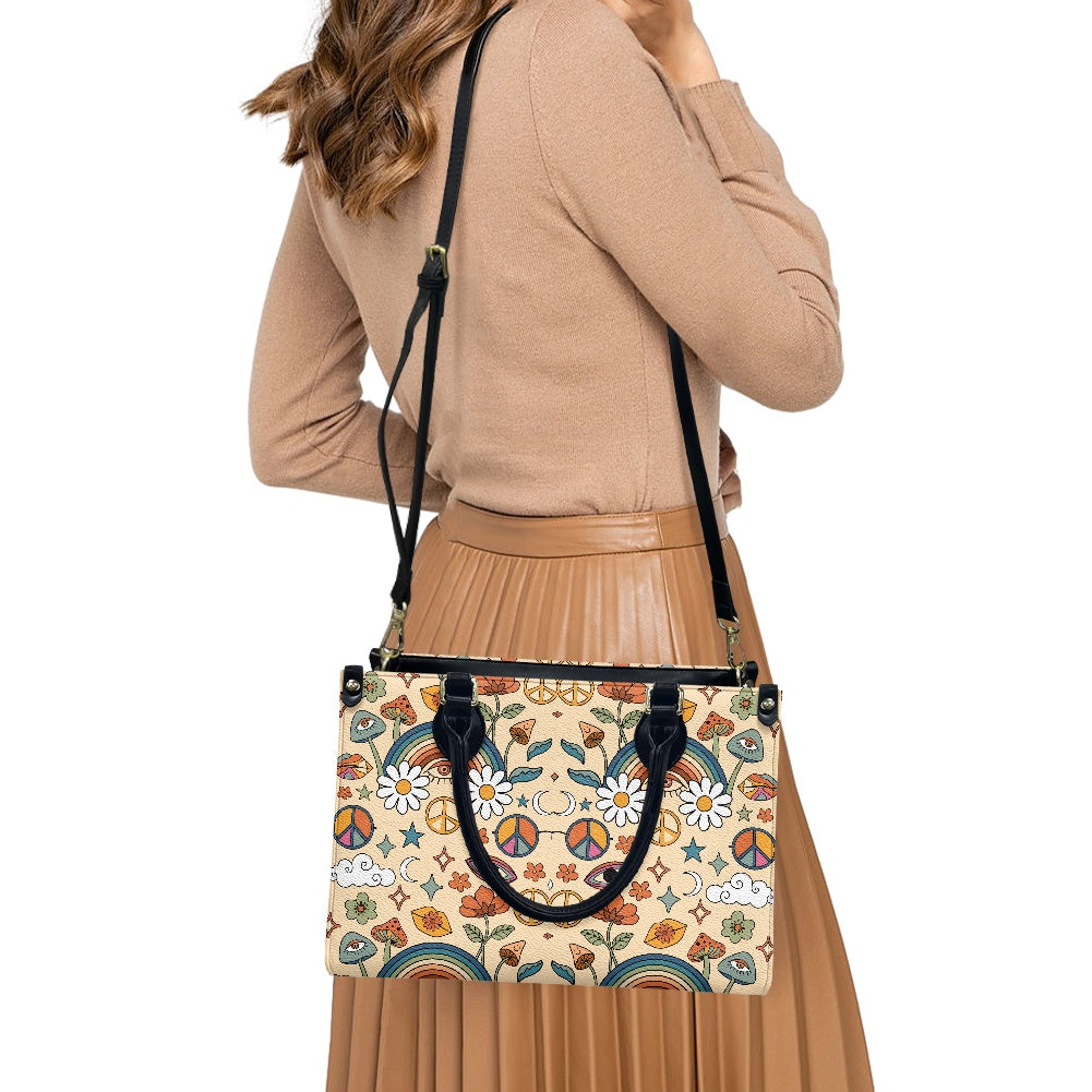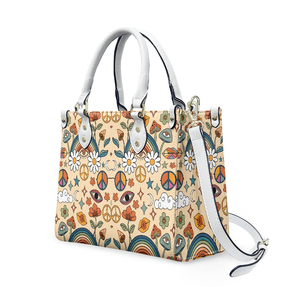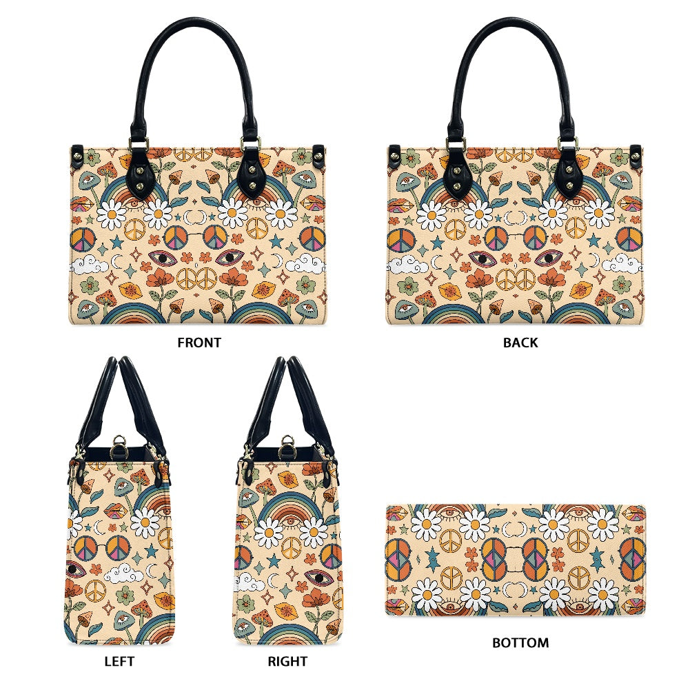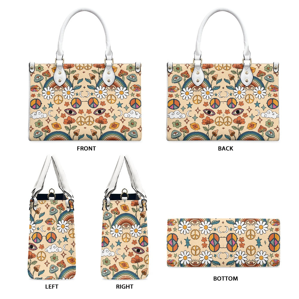 Boho Rainbow and Trippy Mushrooms Women's Vegan Leather Handbag