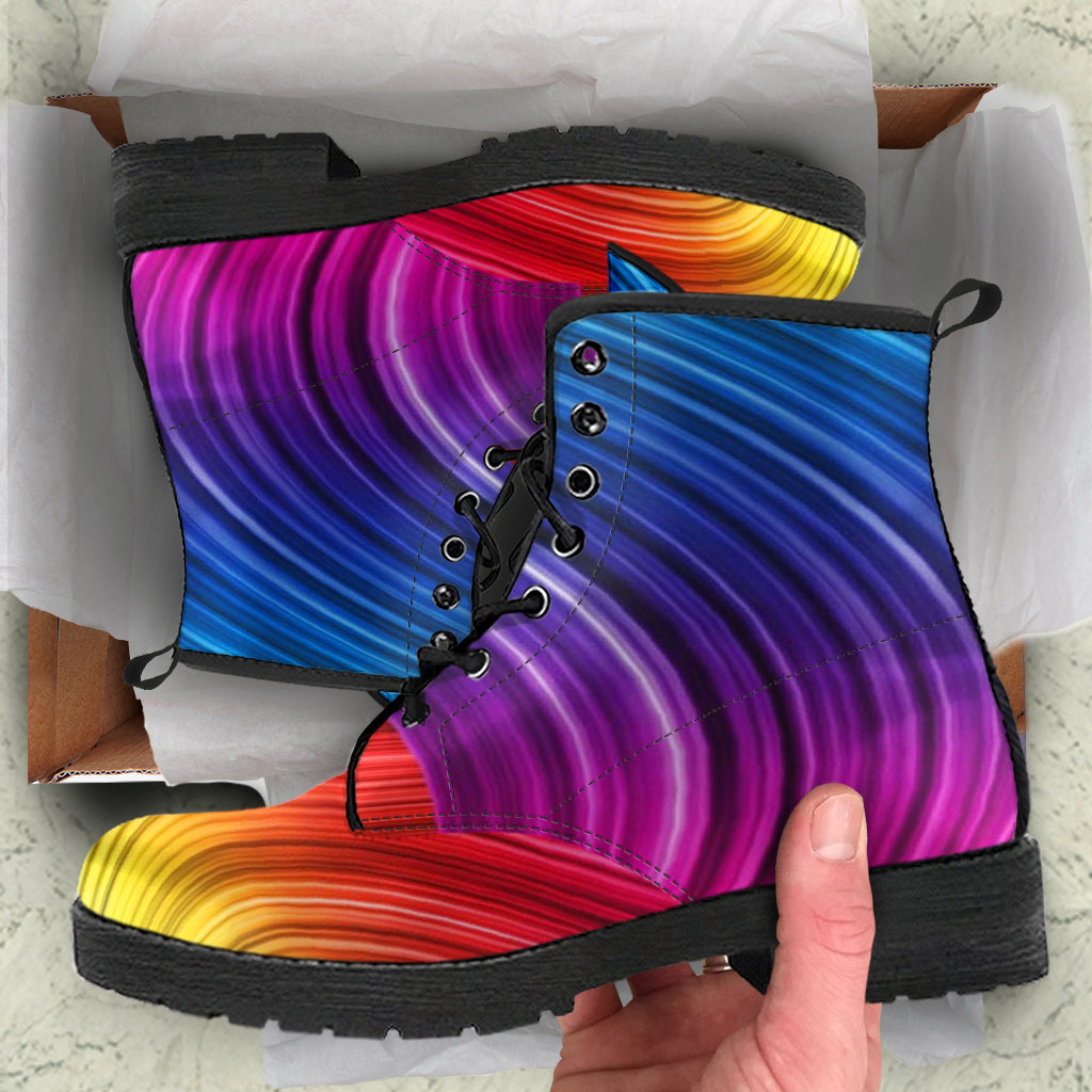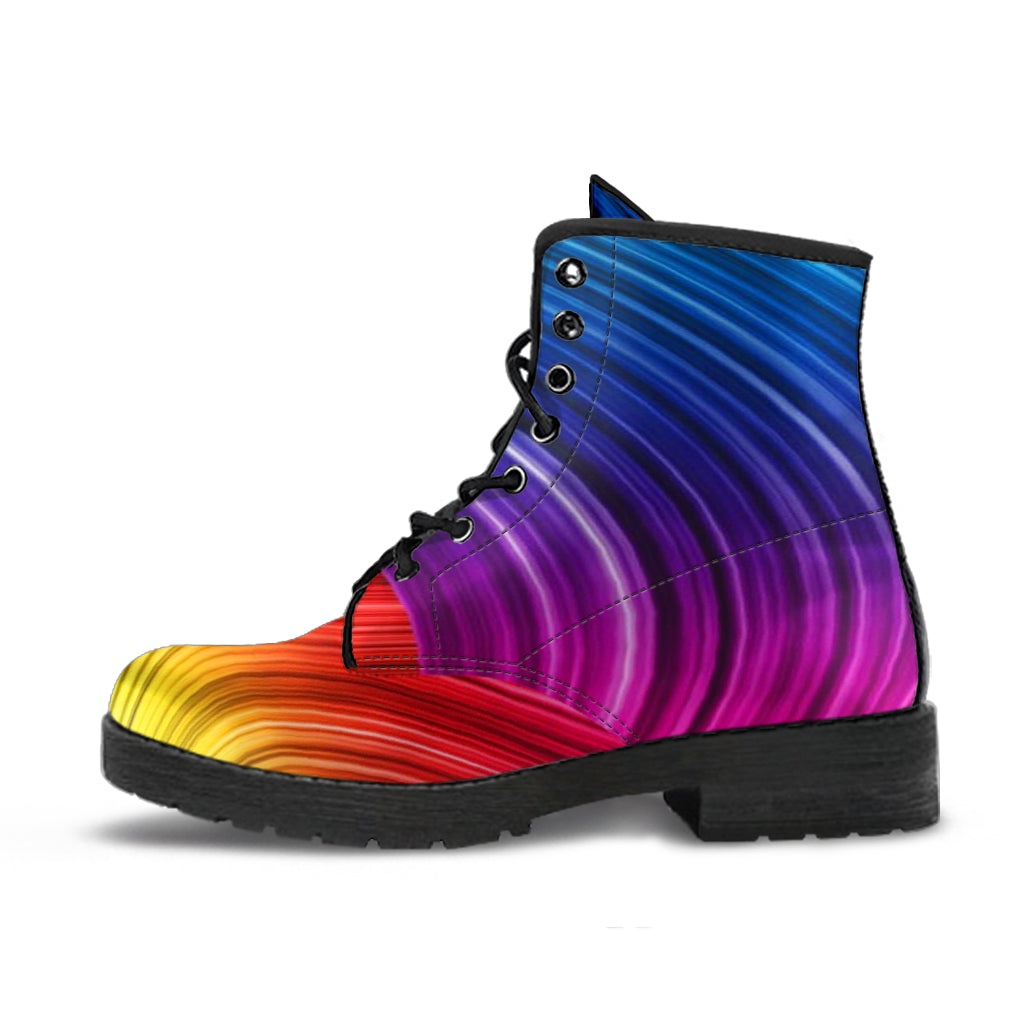 Step up your shoe game with our Rainbow Wave Women's Vegan Leather Shoes. These stylish shoes are made from vegan leather, so you can look good while feeling good about your impact on the planet. Perfect for any occasion, these shoes will add a pop of color and personality to any outfit.
