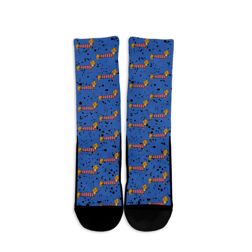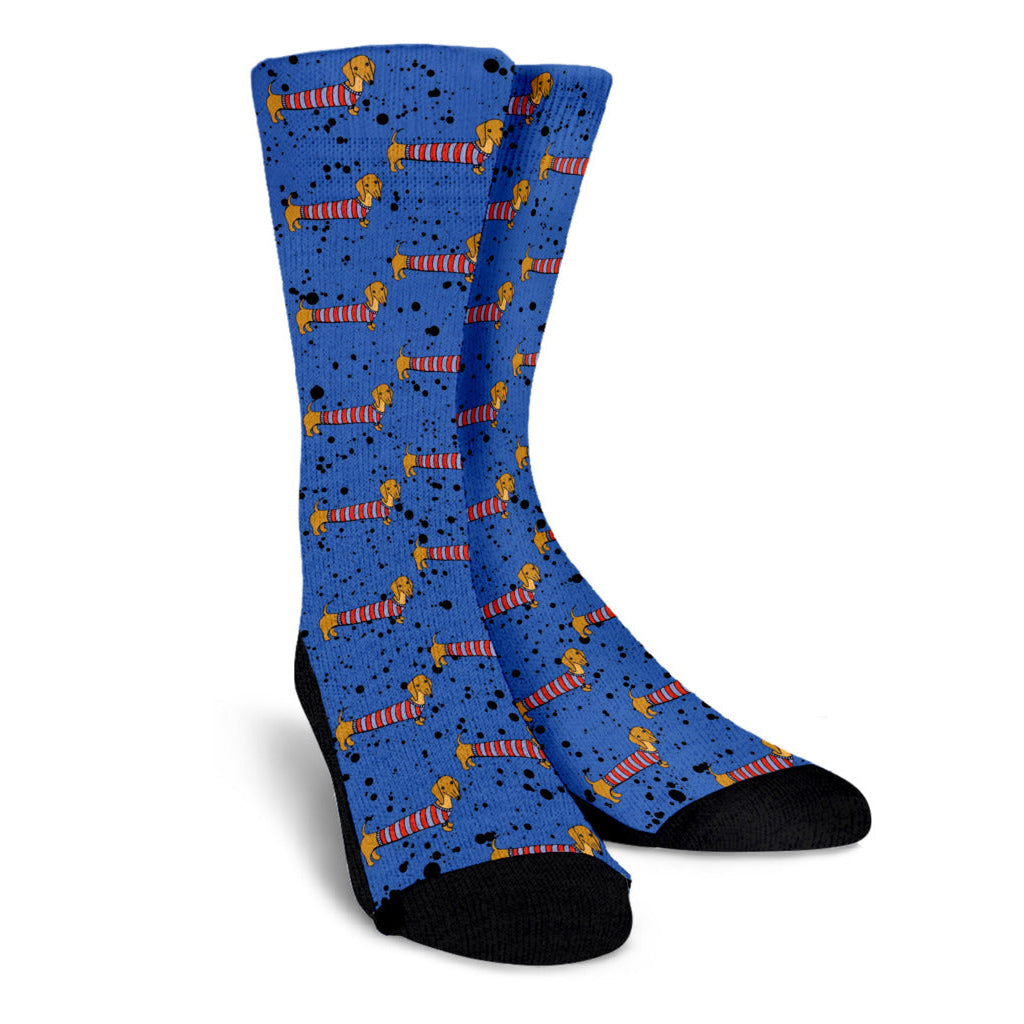 Step up your sock game with these adorable Dachshund dressed Women Crew socks. Perfect for dog lovers, these socks will keep your feet cozy and stylish. Take man's best friend with you wherever you go! (Woof-initely a must-have!)