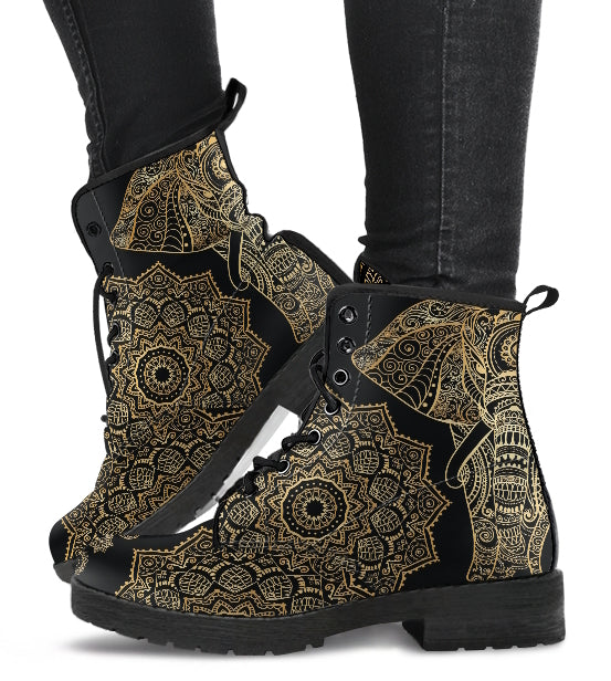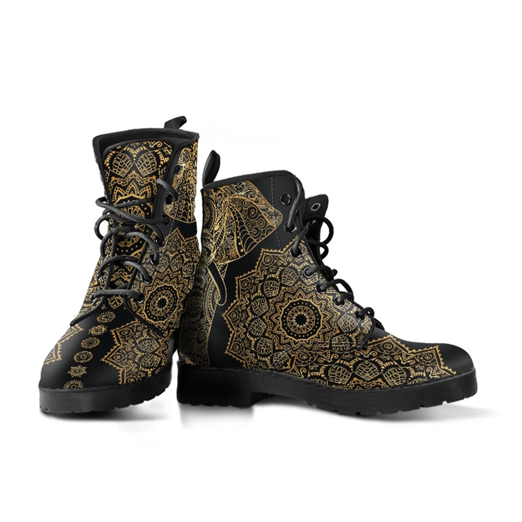 Elephant Mandala Vegan Leather Combat Boots - READY TO SHIP
