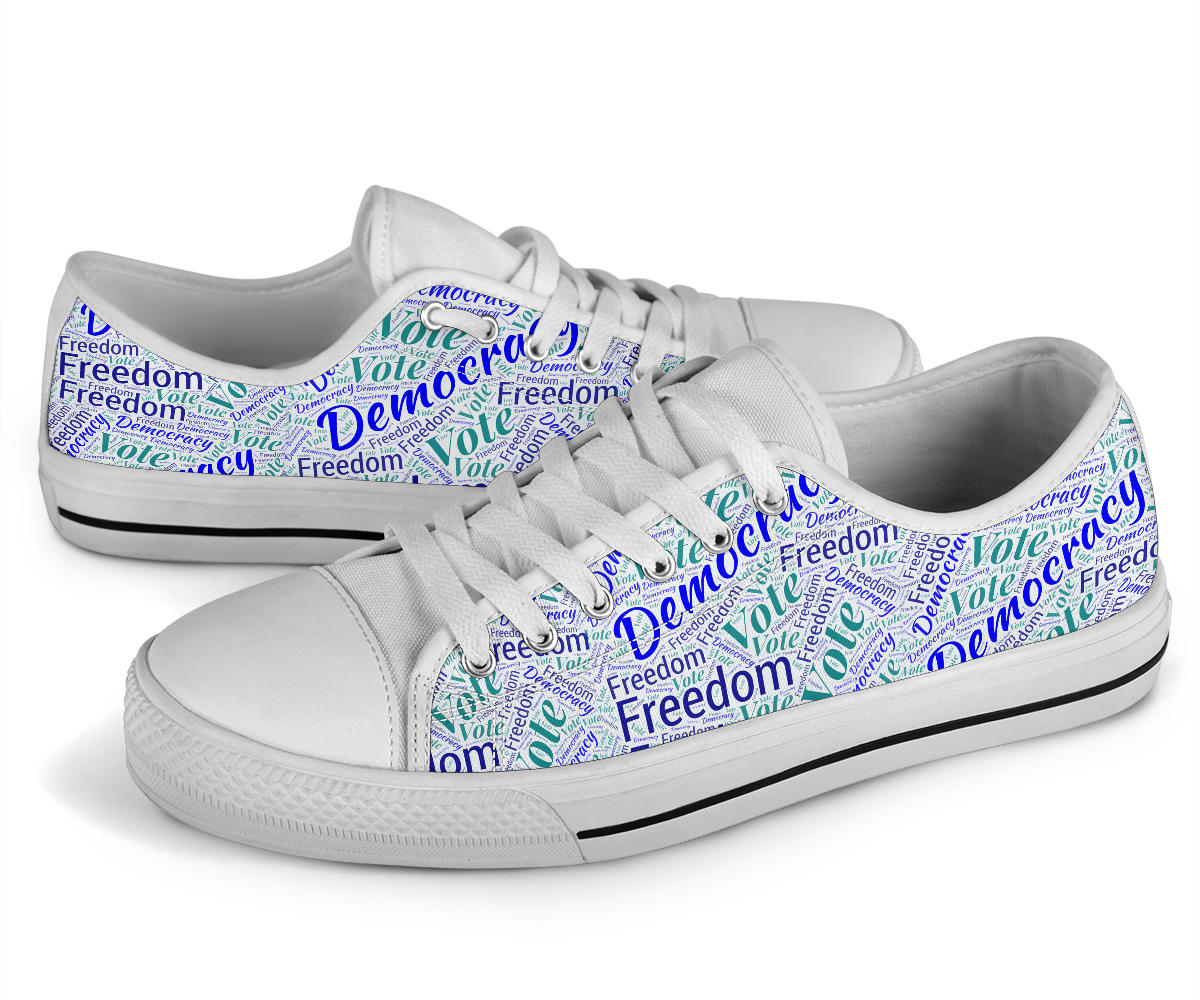 Show your dedication to democracy and freedom with our Freedom Democracy Vote Sneakers. These sneakers make a dramatic statement without being overtly political. Walk with confidence and pride while supporting important values.