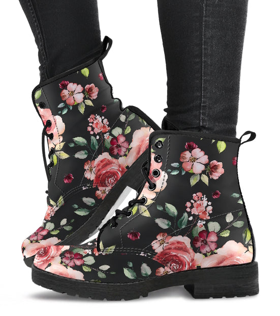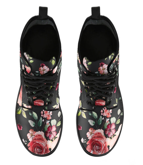 Roses and Tiny Flowers for All Women's Vegan Leather Combat Boots