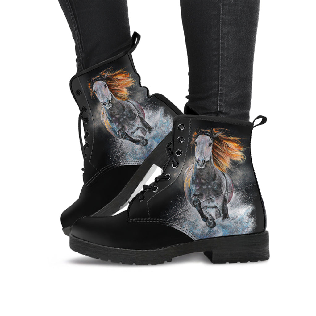 Wild and Free Galloping Horse Women's Vegan Leather Combat Boots