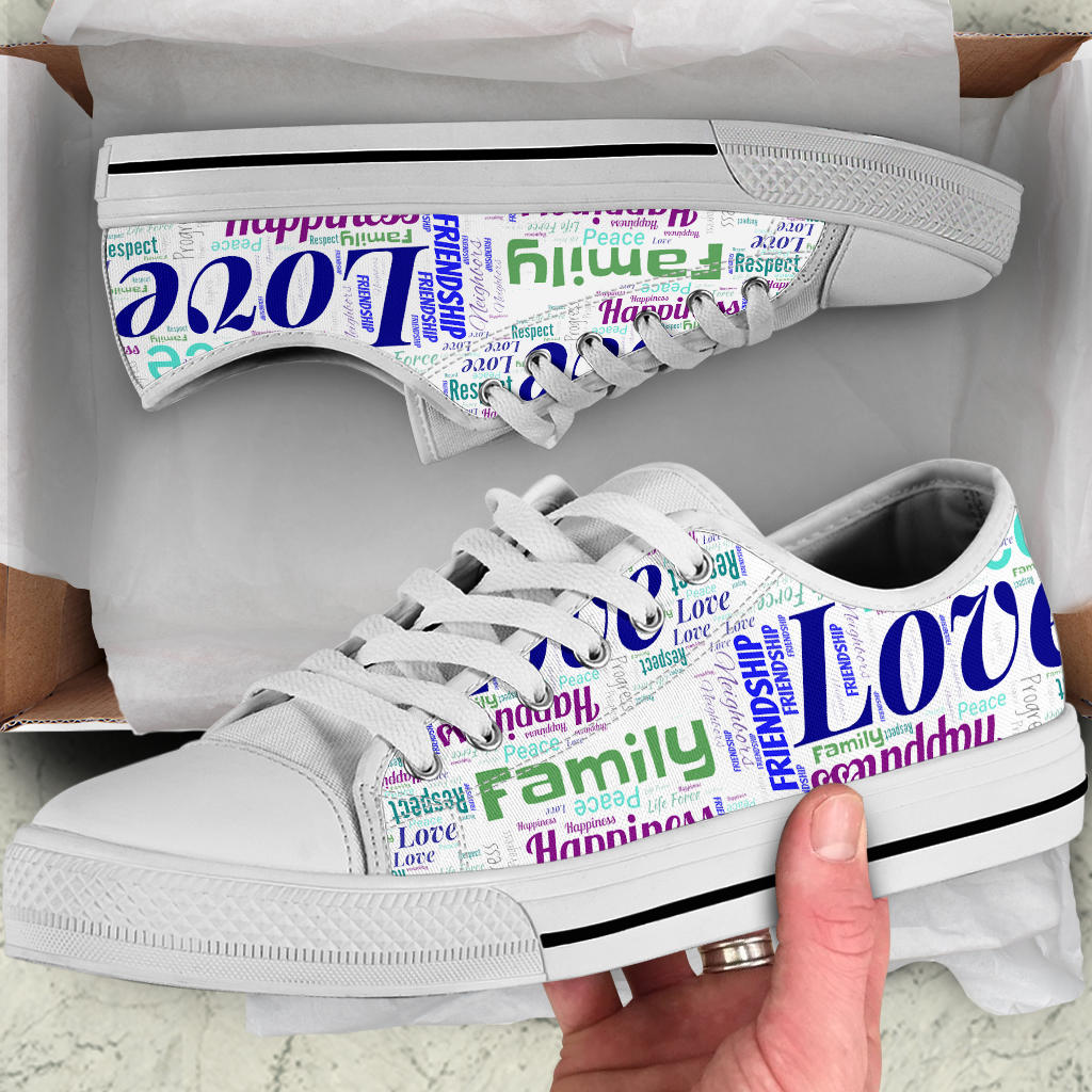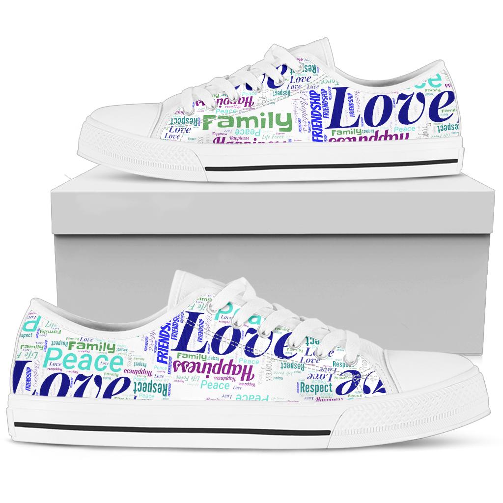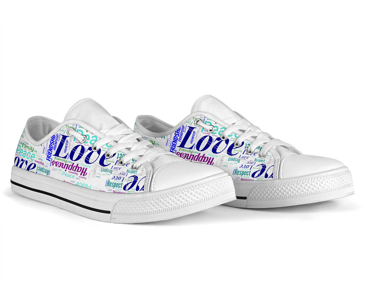 Show your bold and rebellious side with our Peace Love Happiness Sneakers! Spread positivity and make a statement with these low top sneakers. With every step, you'll be inspiring others to join you in promoting peace, love, and happiness. Take the first step and let your feet do the talking!