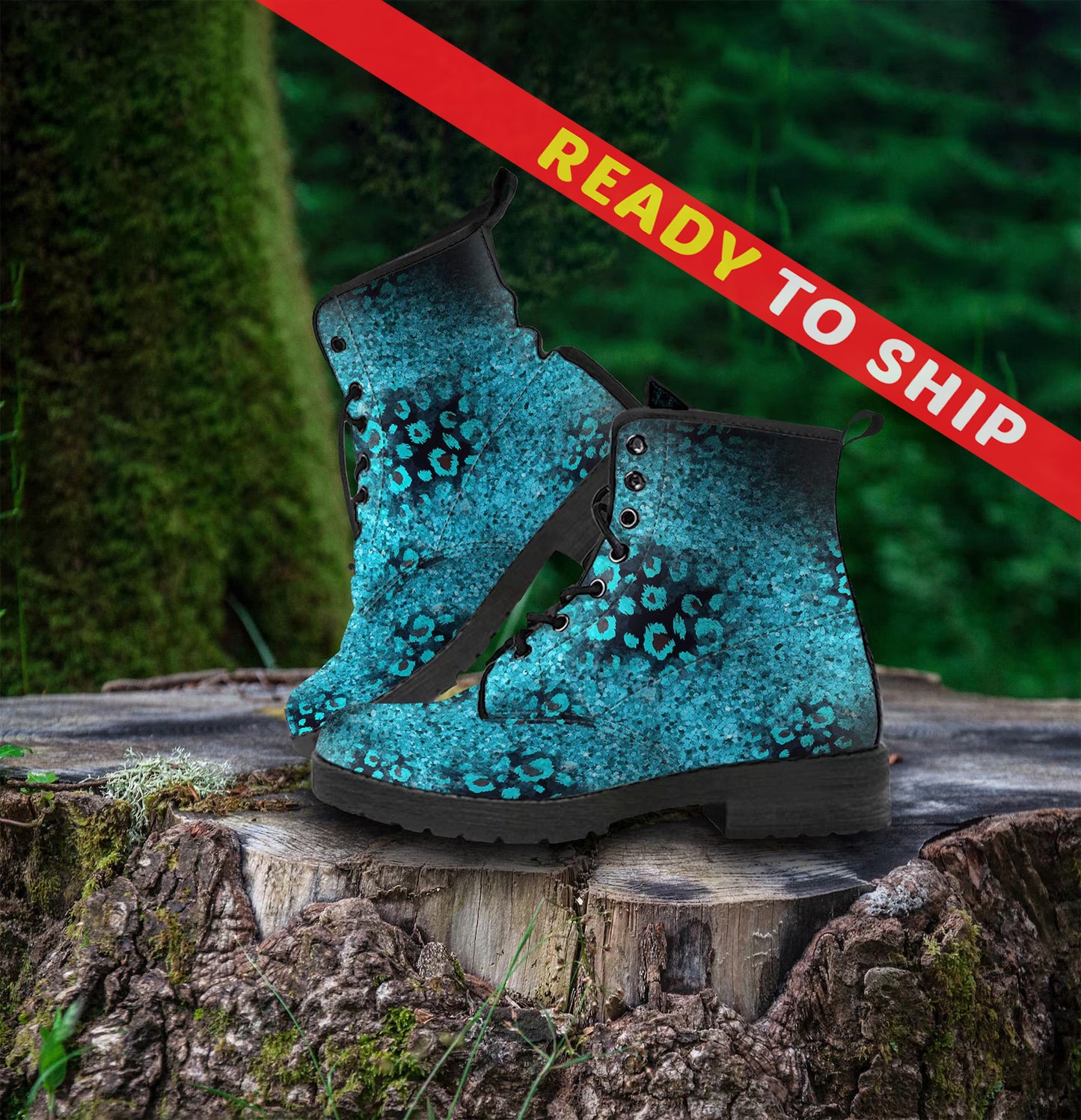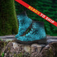Teal, Black and Blue Leopard Spot Vegan Leather Boots - READY TO SHIP