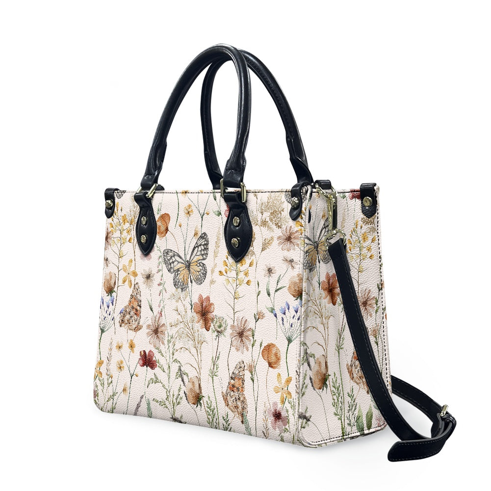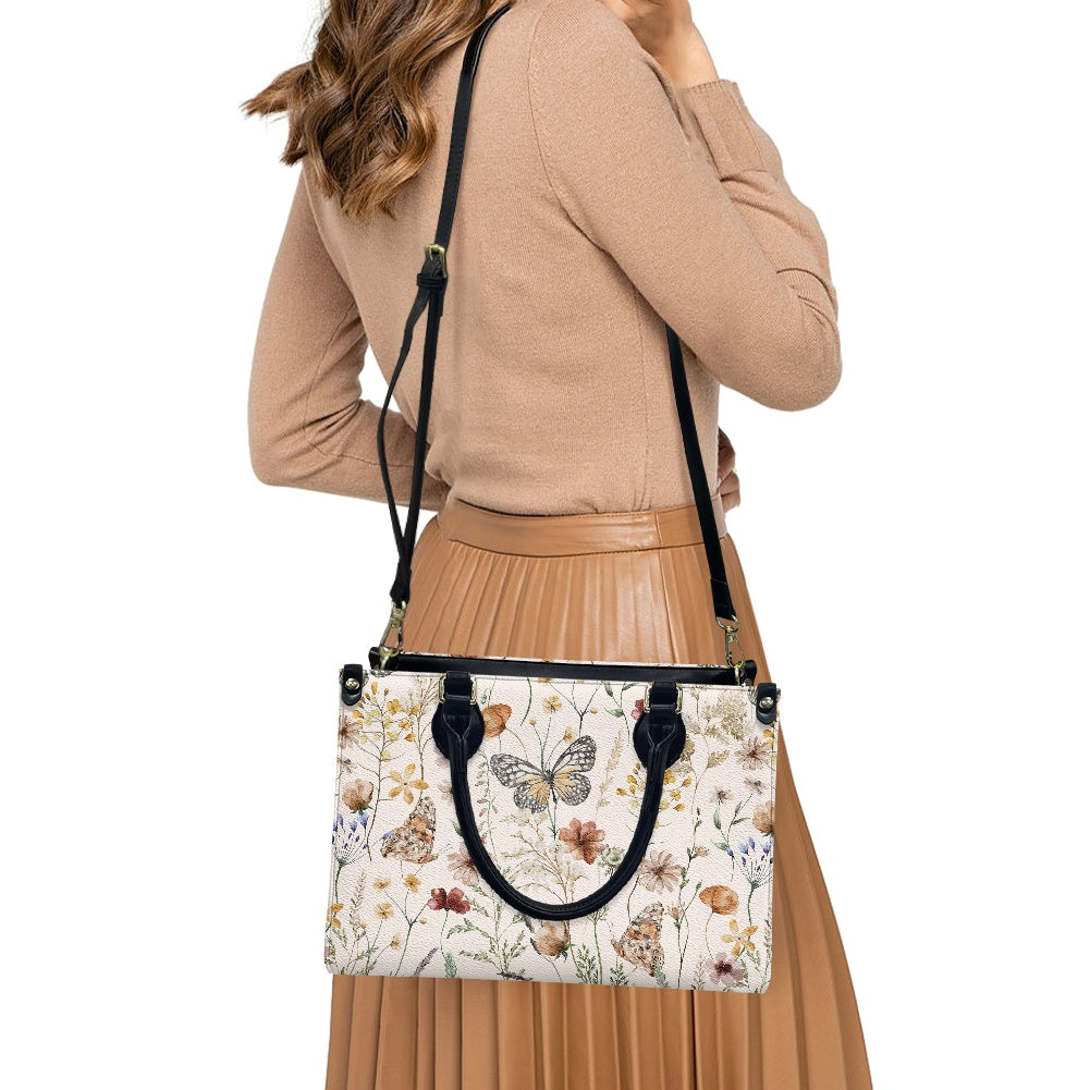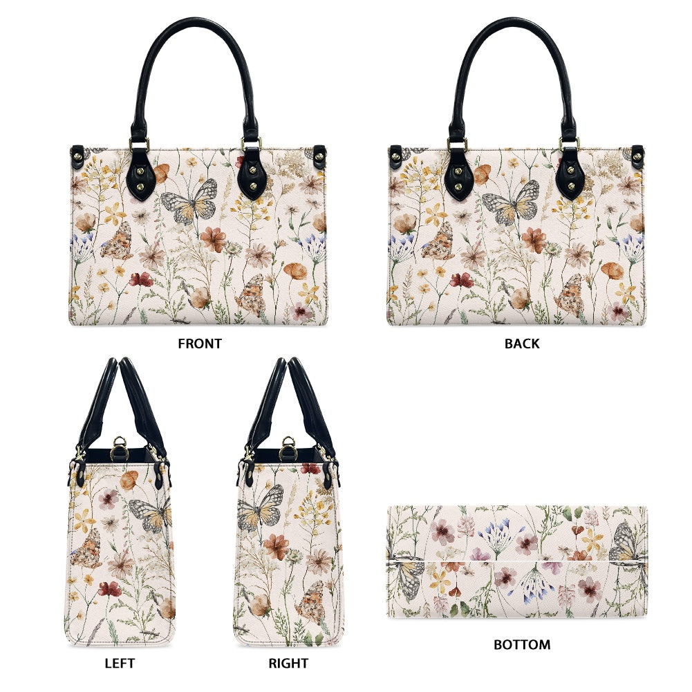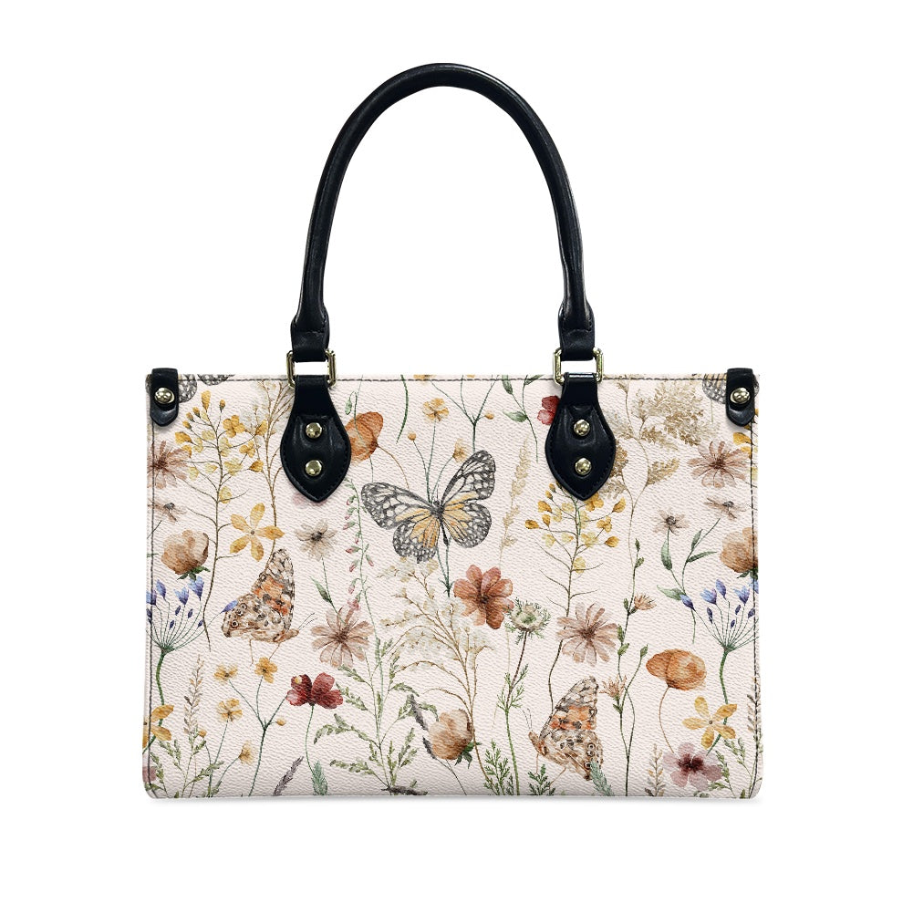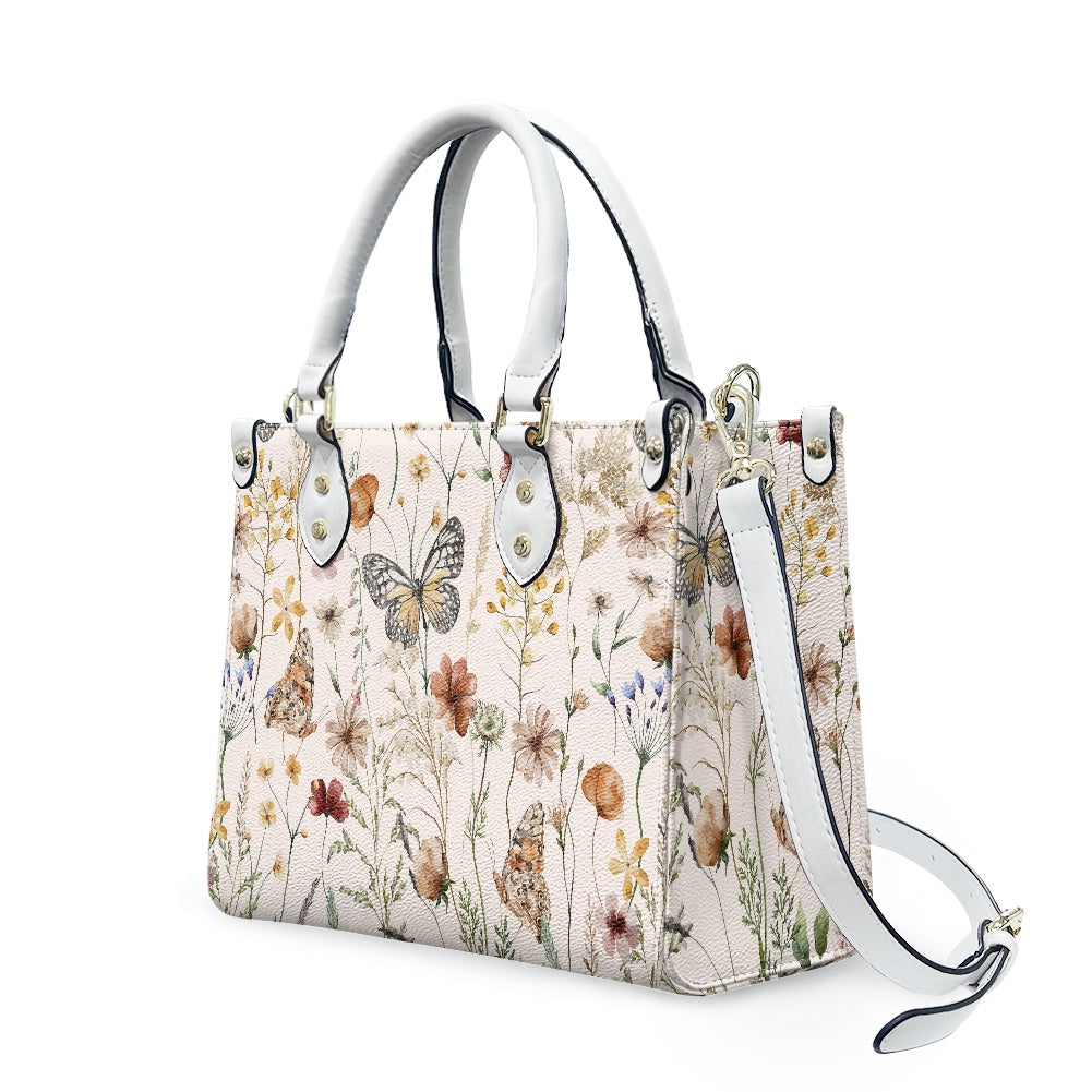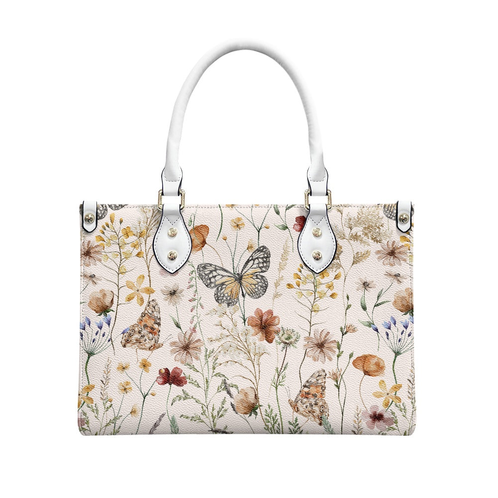 Tiny Bloom Watercolor Butterfly Women's Vegan Leather Handbag