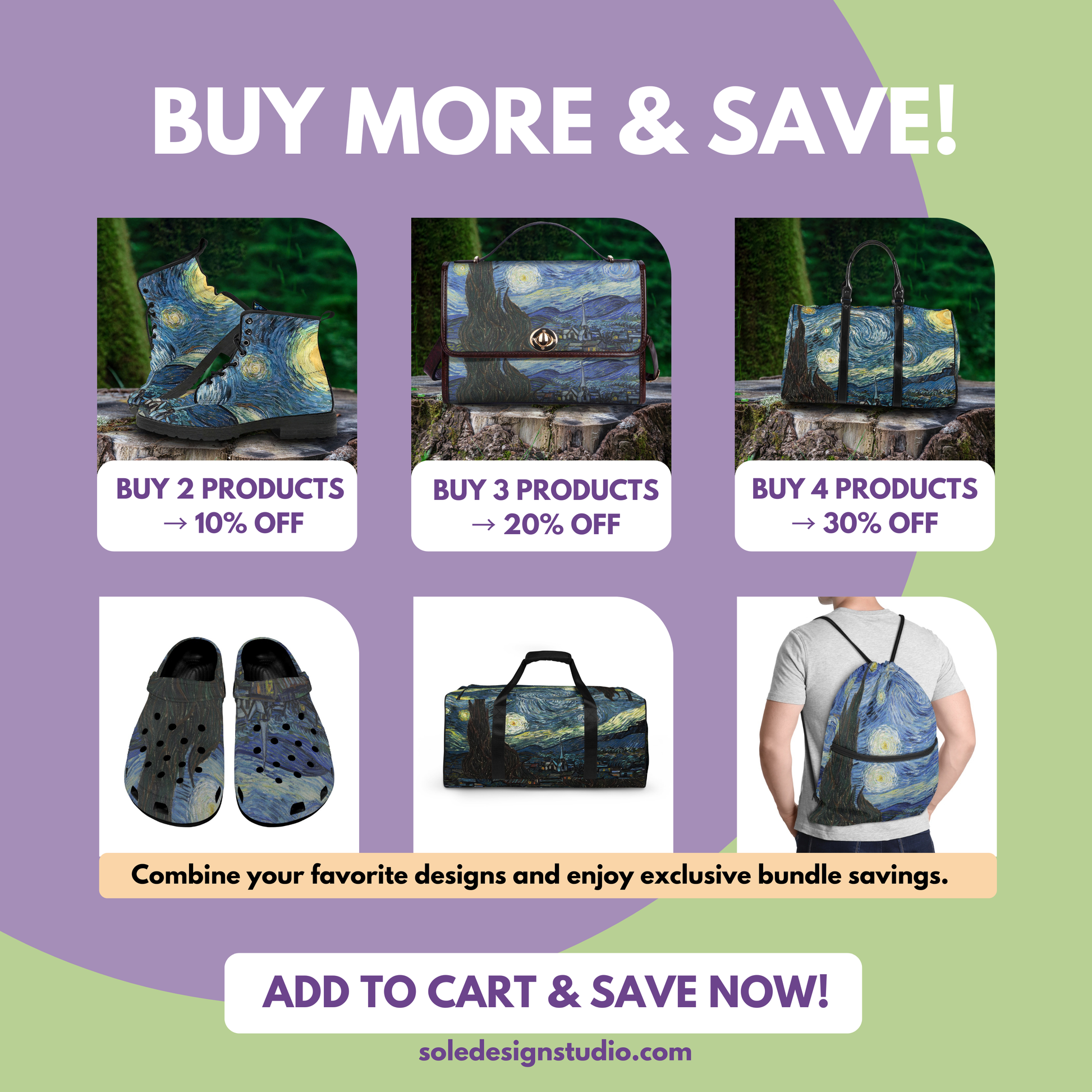 Add some personality to your shoe collection with these playful and distinctive vegan leather boots, featuring a one-of-a-kind print that will make you stand out from the crowd. Van Gogh's Starry Nights is an iconic piece of art, featuring the renowned artist's signature style... interpreted into a boot design.