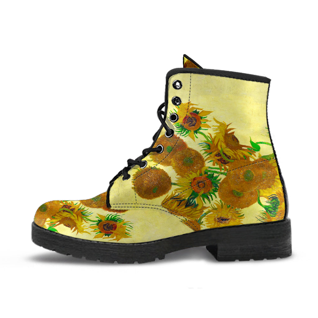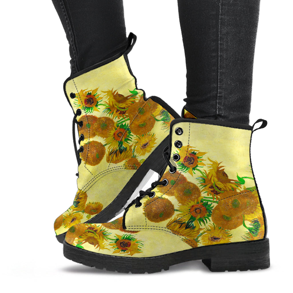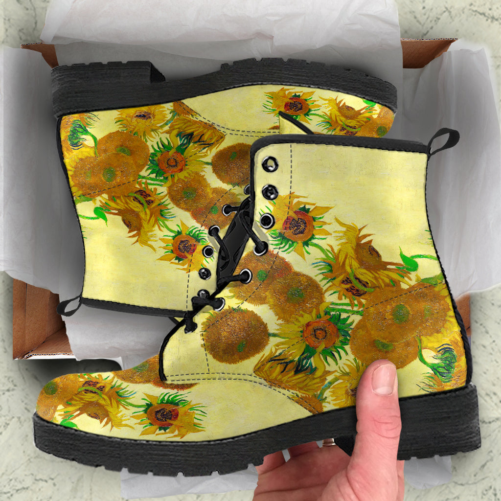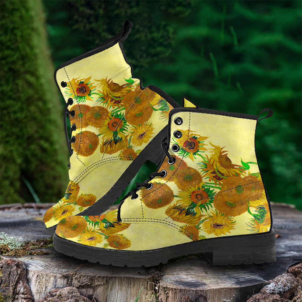 Van Gogh's Sunflowers Women's Vegan Leather Combat Boots