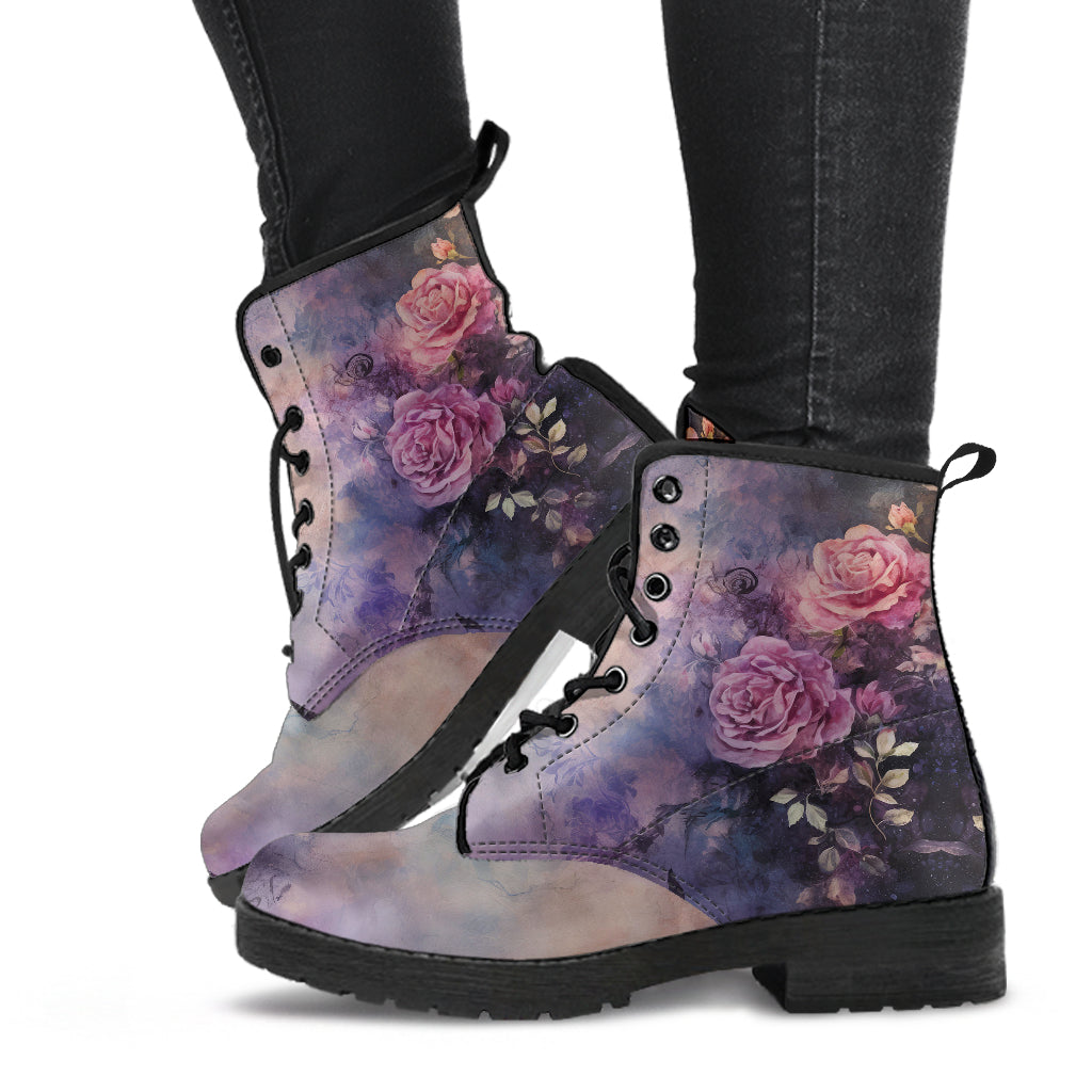 Vintage Dark Gothic Roses Women's Vegan Leather Combat Boots